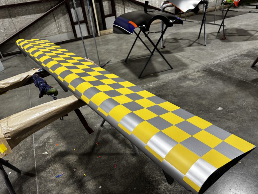 These pictures were taken by Autumn Baugh from Evoke on February 5th. The airplane has the base coat on it. Striping, paint, and clear coat will be starting soon. Hope to be done around March 1st.