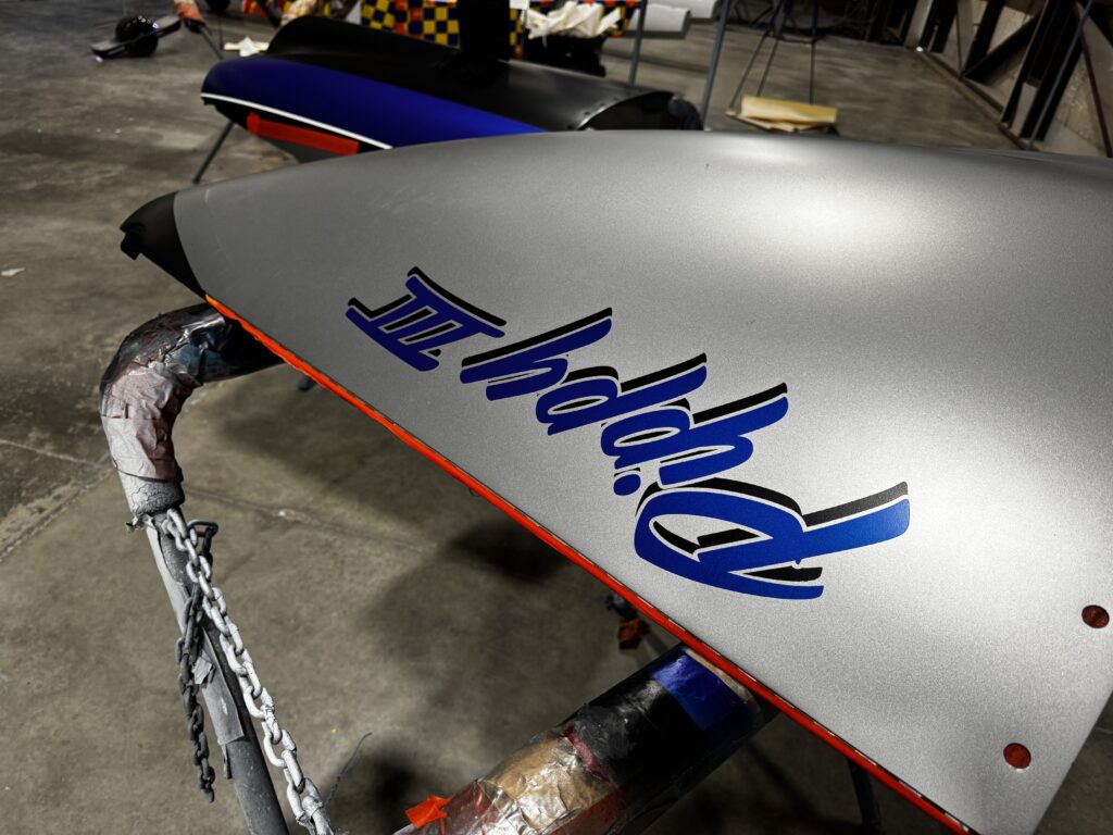 It is now in the paint booth. Still a lot of work to go including final prep, base coat, striping and clear coat. Maybe 3 to 4 weeks.